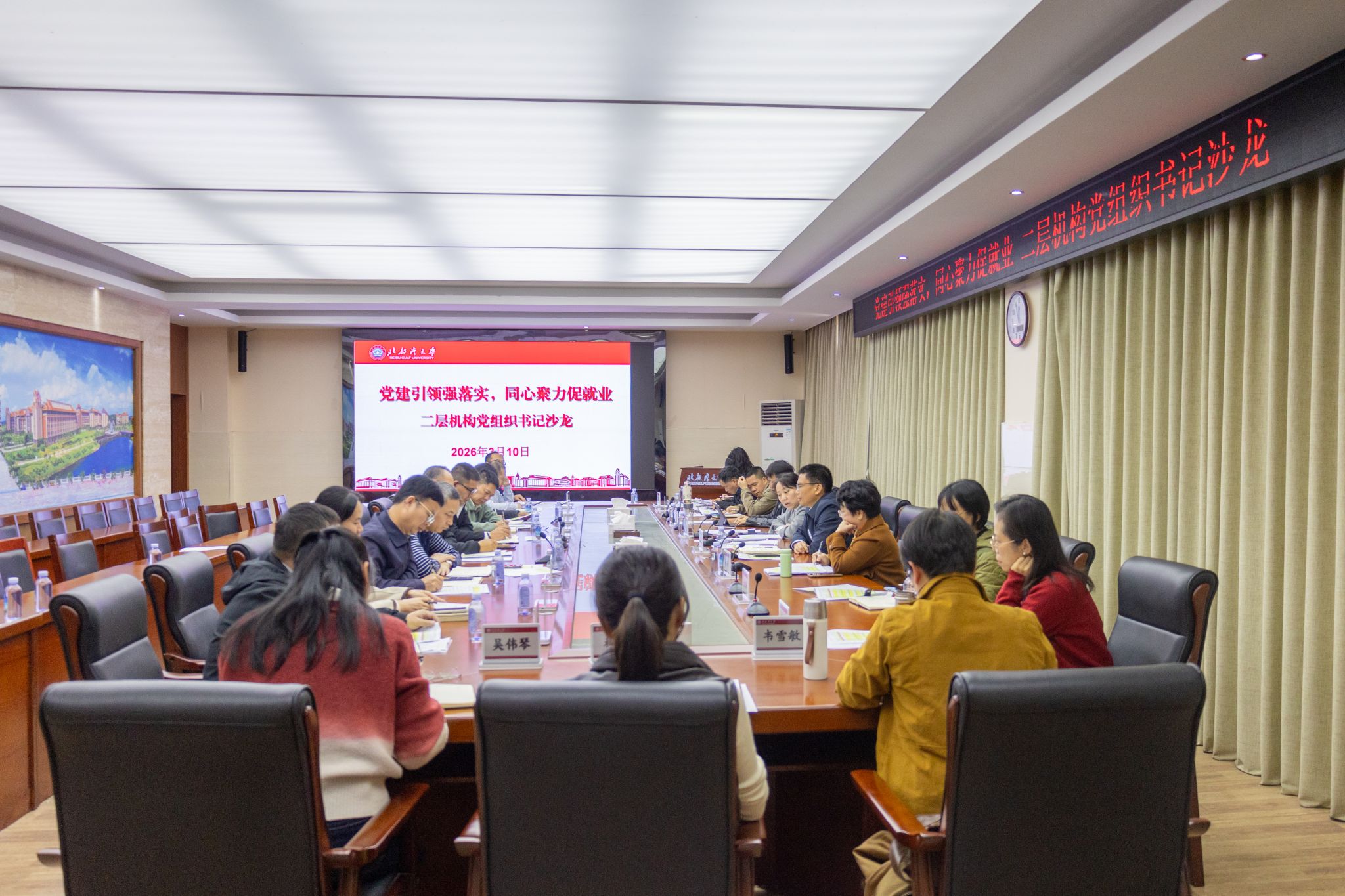 2026年3月10日上午,学校在办公楼523举行二层机构党组织书记沙龙活动,校党委常委、副校长、组织部部长张海燕出席活动并讲话,党委组织部、党委学生工作部相关人员、各二层机构党组织书记参加活动。