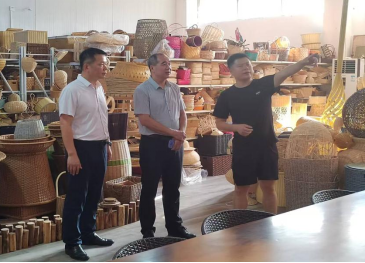 唐高华一行参观广西博白县凰图工艺品有限责任公司“芒编”工艺现场